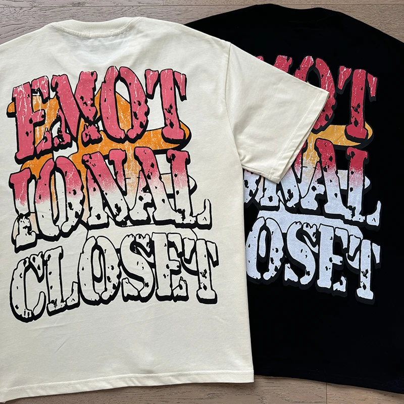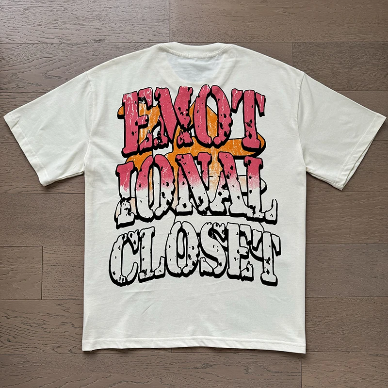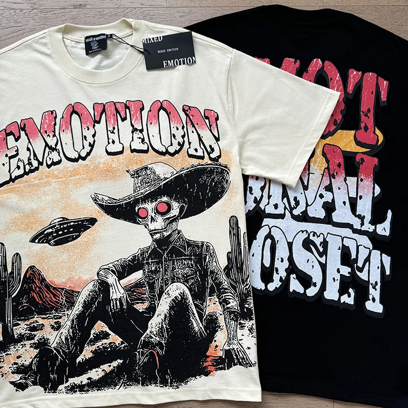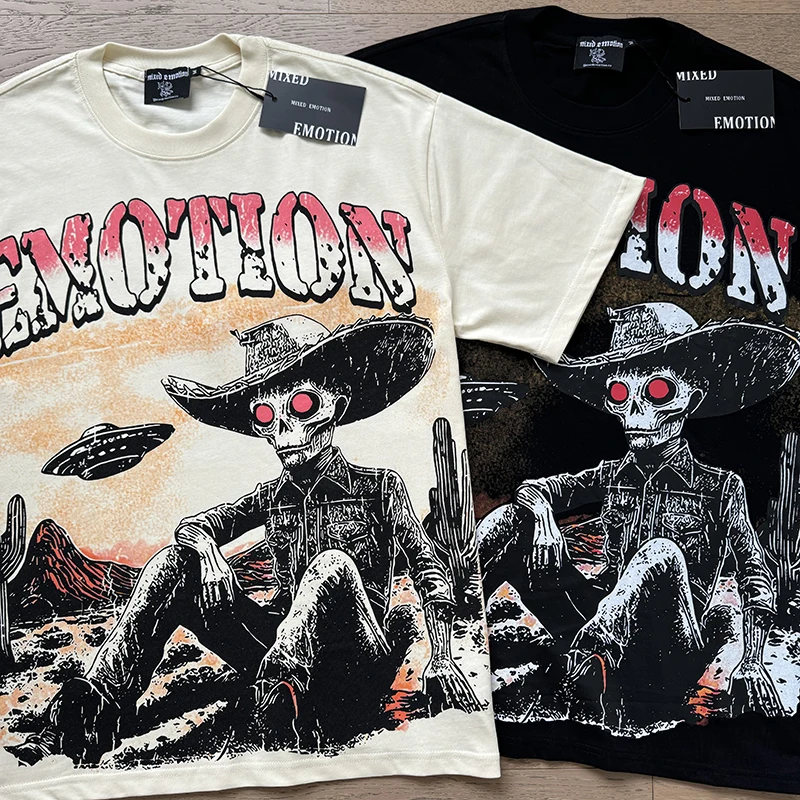 Alien Print MIXED EMOTION White Pure Cotton Tshirts Men Women American High Street Oversized T Shirt