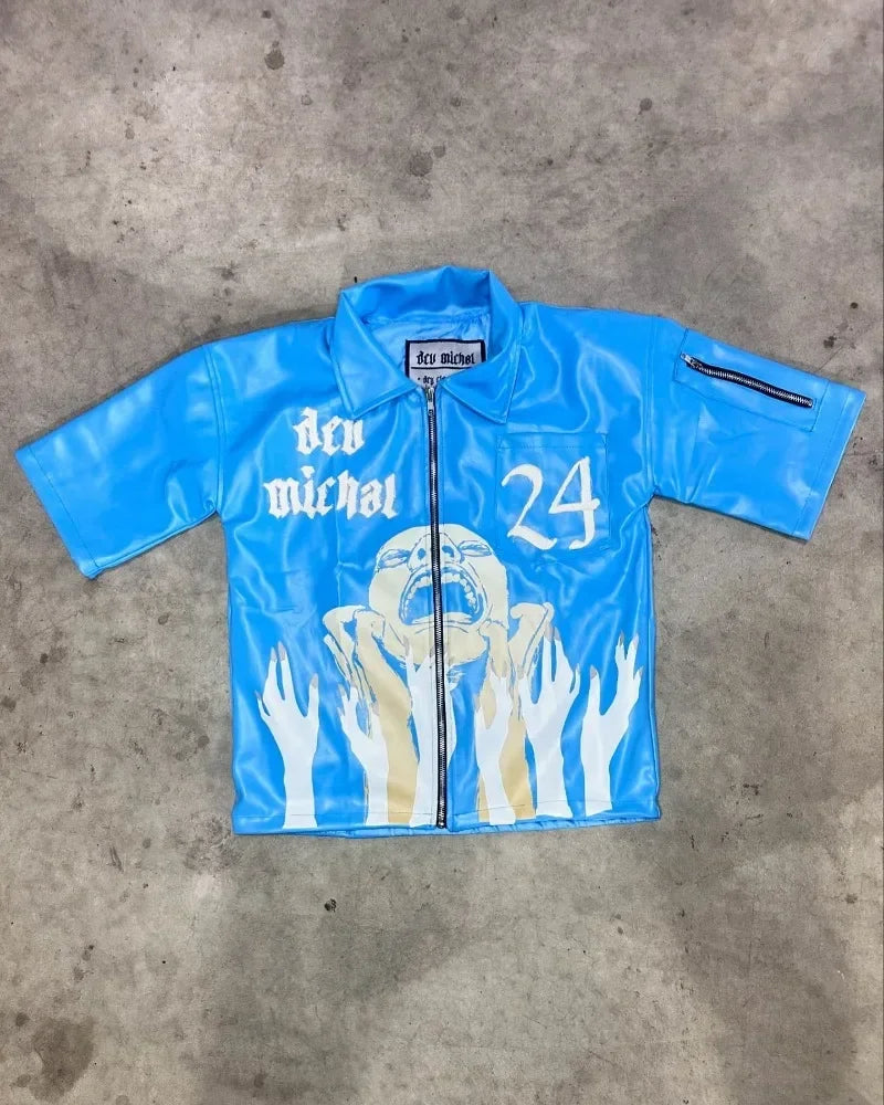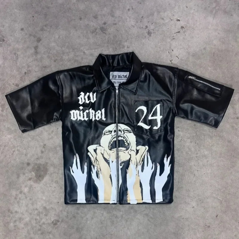 American Fashion Trend Goth Print Spot Zipper Polo Shirts Men Y2K New Street Hip Hop Retro Short Sleeved Couples Selling T-shirt