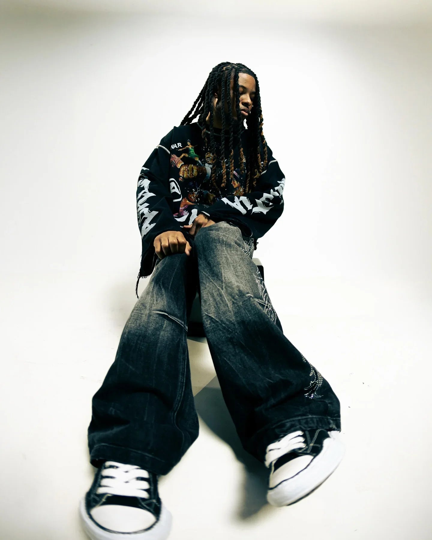 American trendy high street cartoon pattern printed loose breasted long sleeve T-shirt Y2K Harajuku hip-hop gothic streetwear