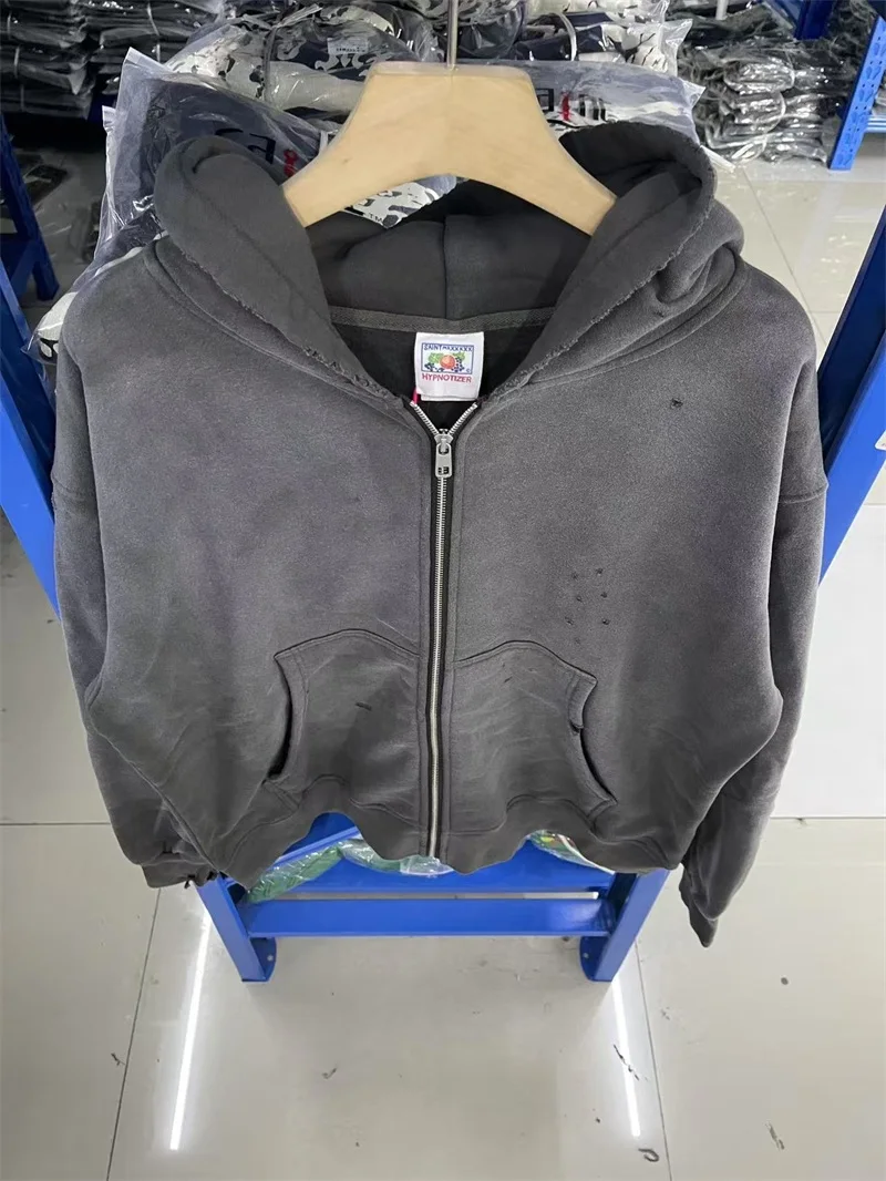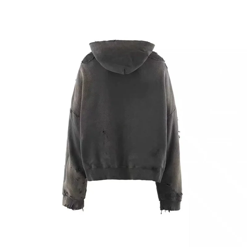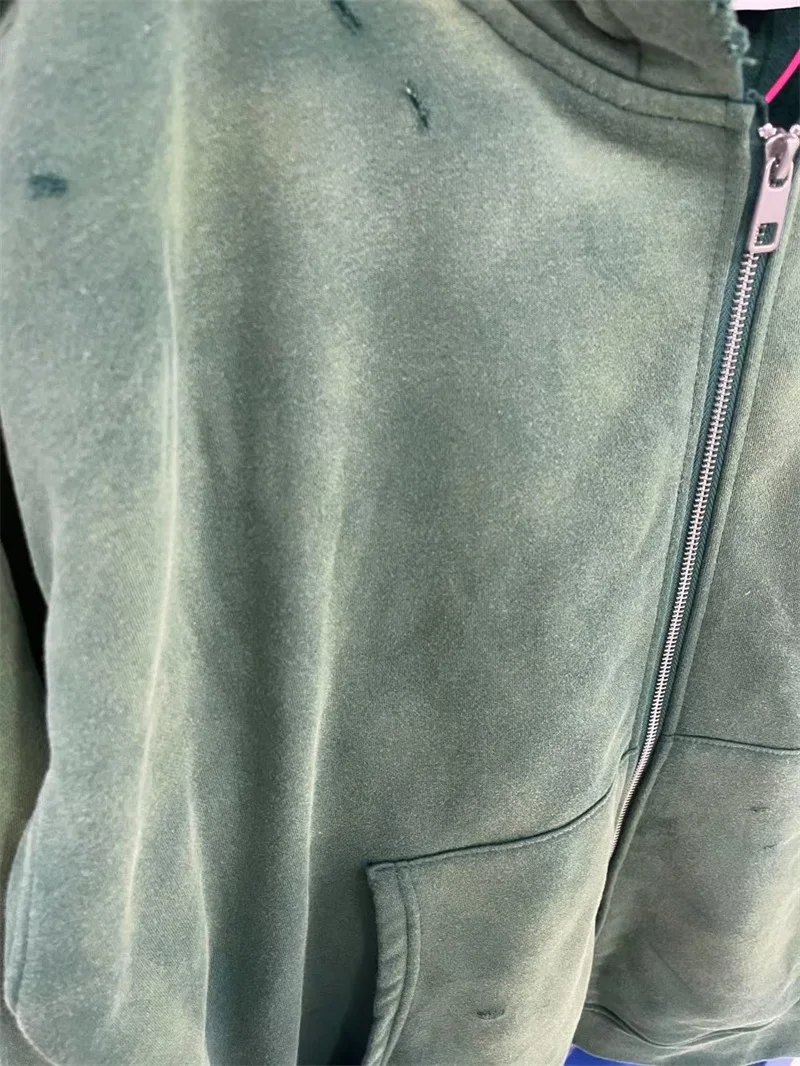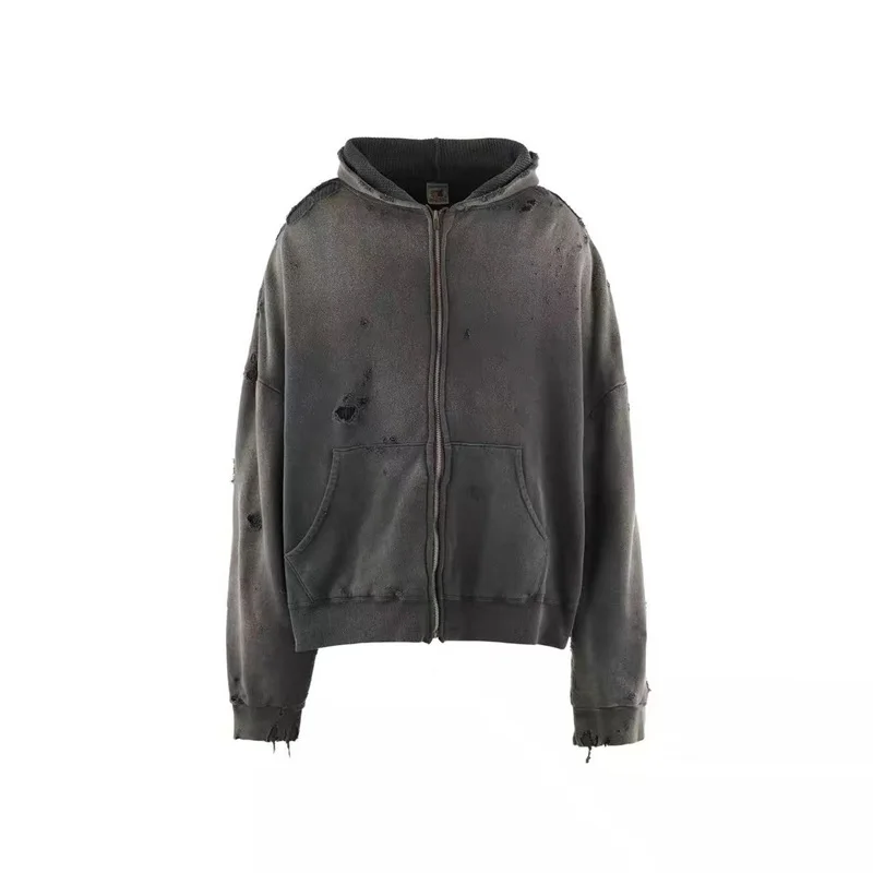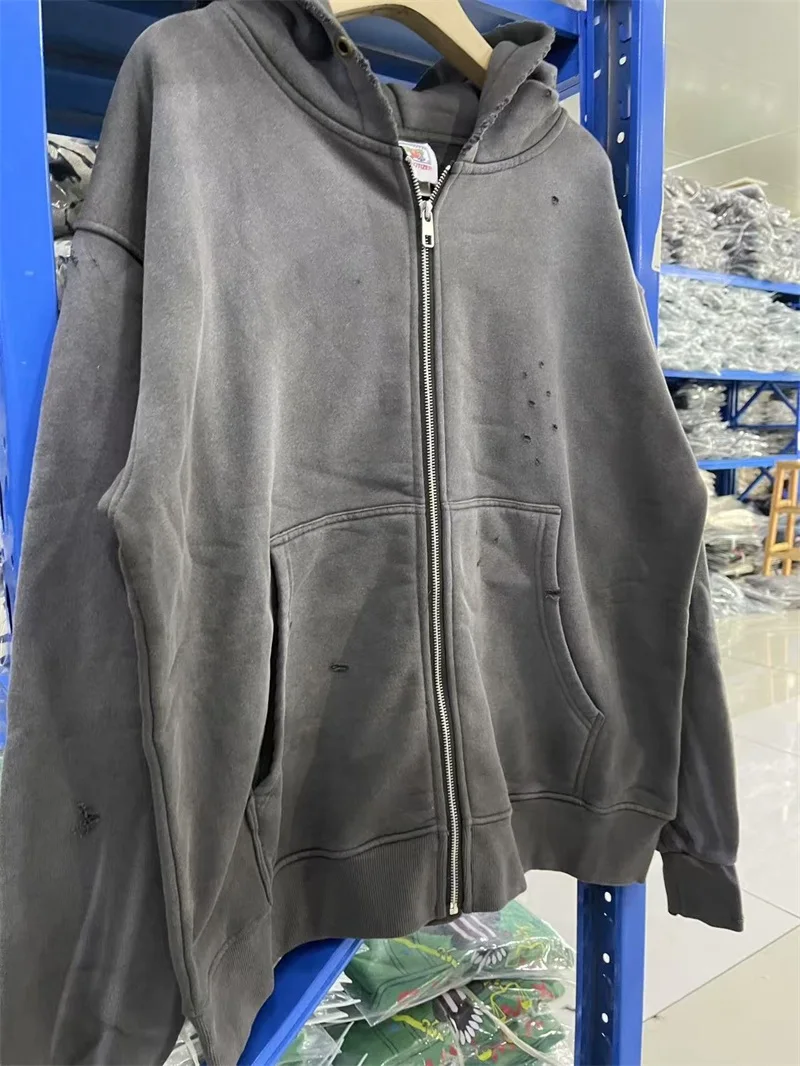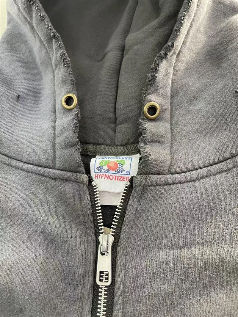 Black Washed SAINT Mxxxxxx Zipper Jackets Men Women Destroy Hole Oversized Vintage Hoodies