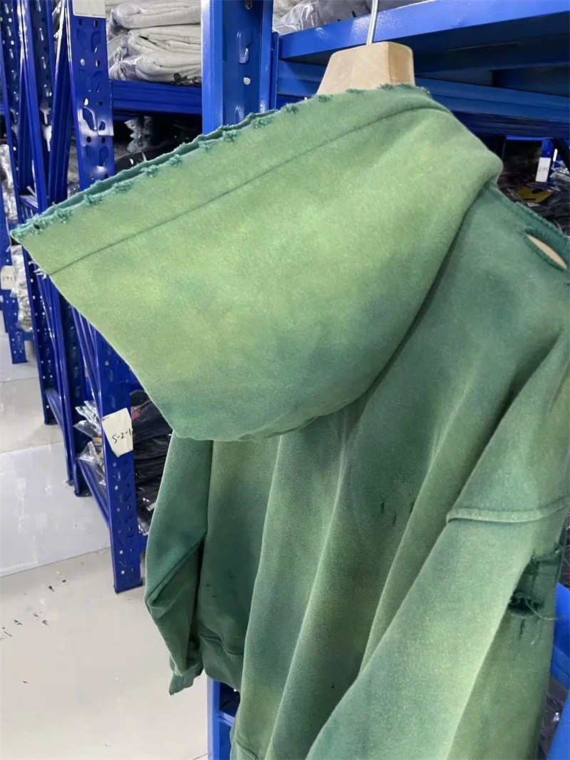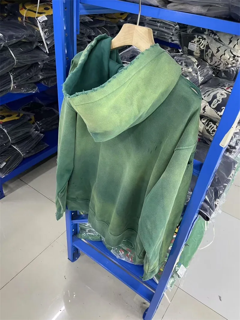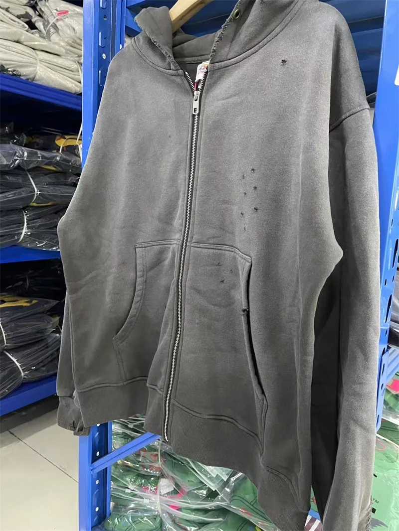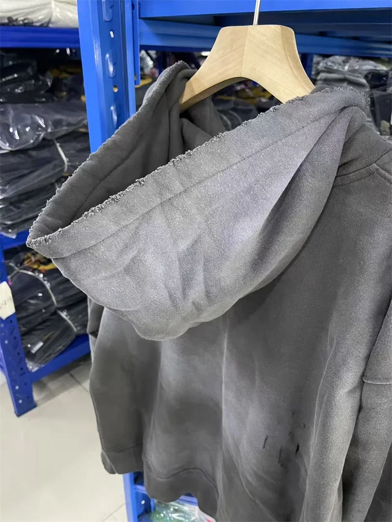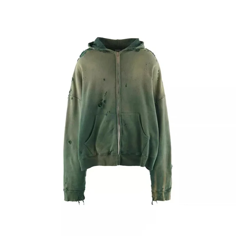 Black Washed SAINT Mxxxxxx Zipper Jackets Men Women Destroy Hole Oversized Vintage Hoodies