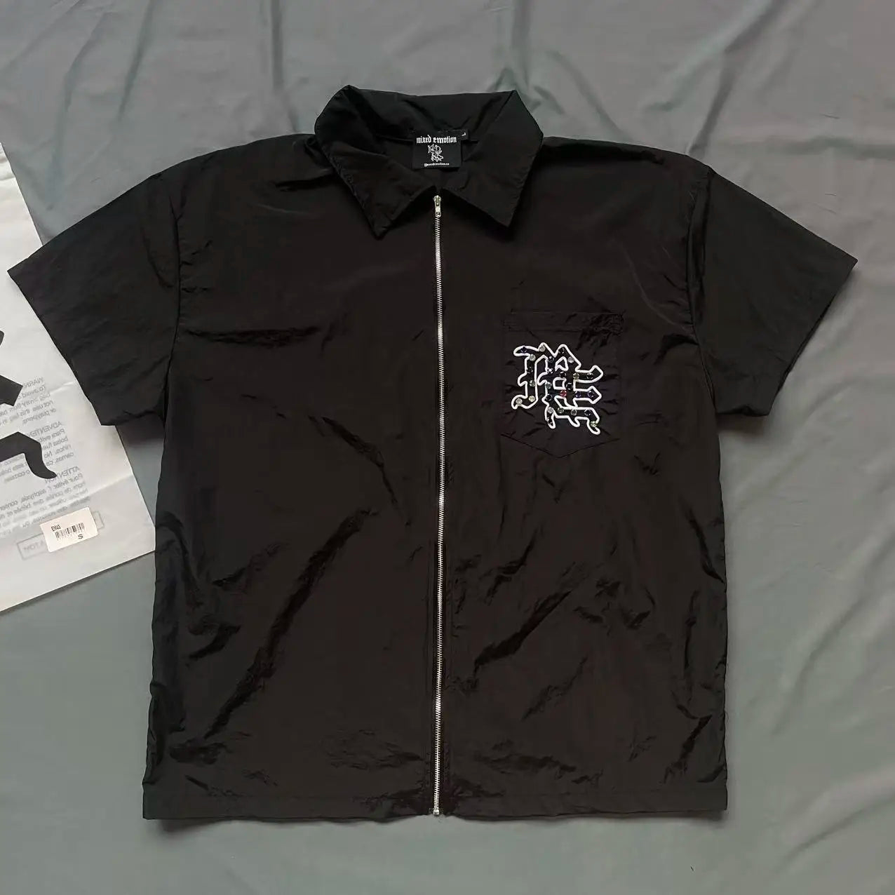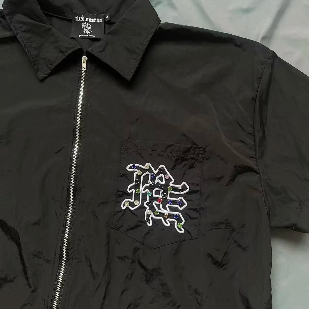 Cardigan Zipper MIXED EMOTION T-shirt Embroidery Diamond Inlaid Men Women Short Sleeve Tops Tee