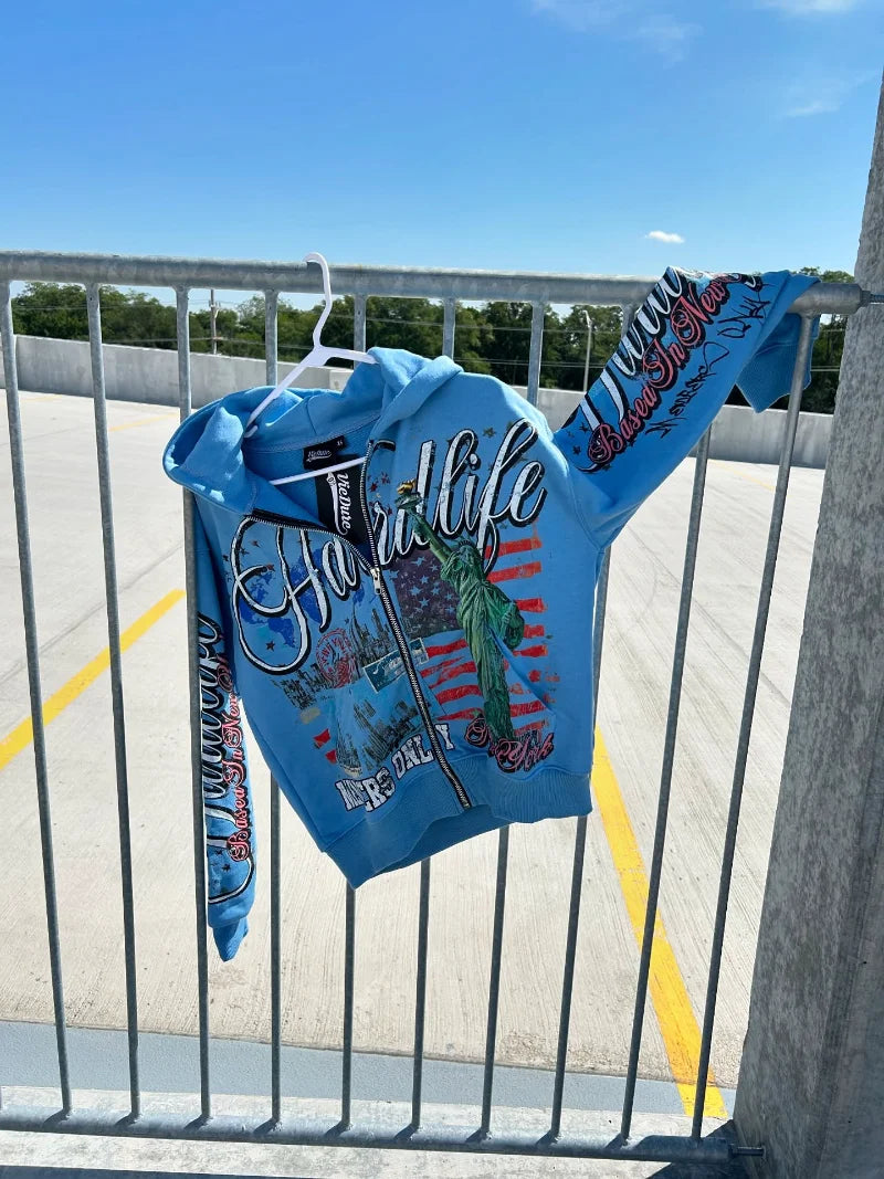 European and American streetwear oversized printed zipper hoodie for men Y2k anime hoodie jacket retro Harajuku sweatshirt women