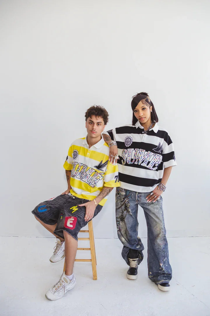 Sume Summer Women Hip Hop Klein Stone Embroidery Stripe Polo Shirt Y2k Retro Fashion Classic Lapel Neck Shirt Long Sleeved Tops