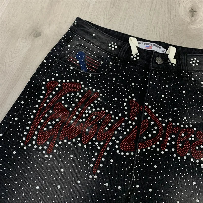 VALLEY Jean Shorts Men Women 1:1 High-quality Hot Drill Ripped Washed Black Vale Jeans