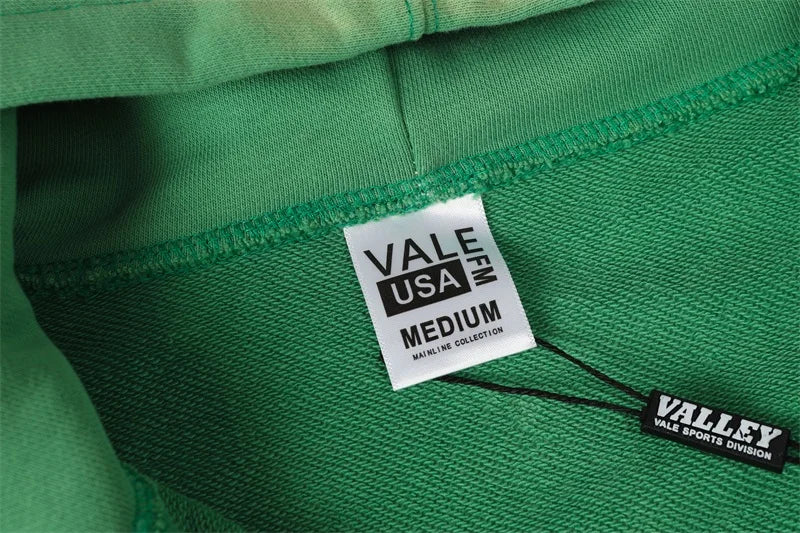 Washed Green VALLEY Sweatshirts Men Women Retro Cartoon Print Vale Hoodies Zip Up Cardigan Jackets